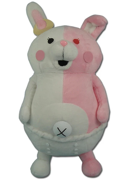 This plush of Magical Rabbit Usami A.K.A Monomi is just as she said, squeezably soft! Unlike her starting outfit, she is shown wearing a diaper and a golden moon charm on her ear. This pink and white bunny wants to help you and make the world a bit more peaceful, but Monokuma might have you think otherwise. Do you trust her? In this cute plush form, it may be hard not to. Make sure to pick up this Monomi plush before Monokuma can do anything else to her.